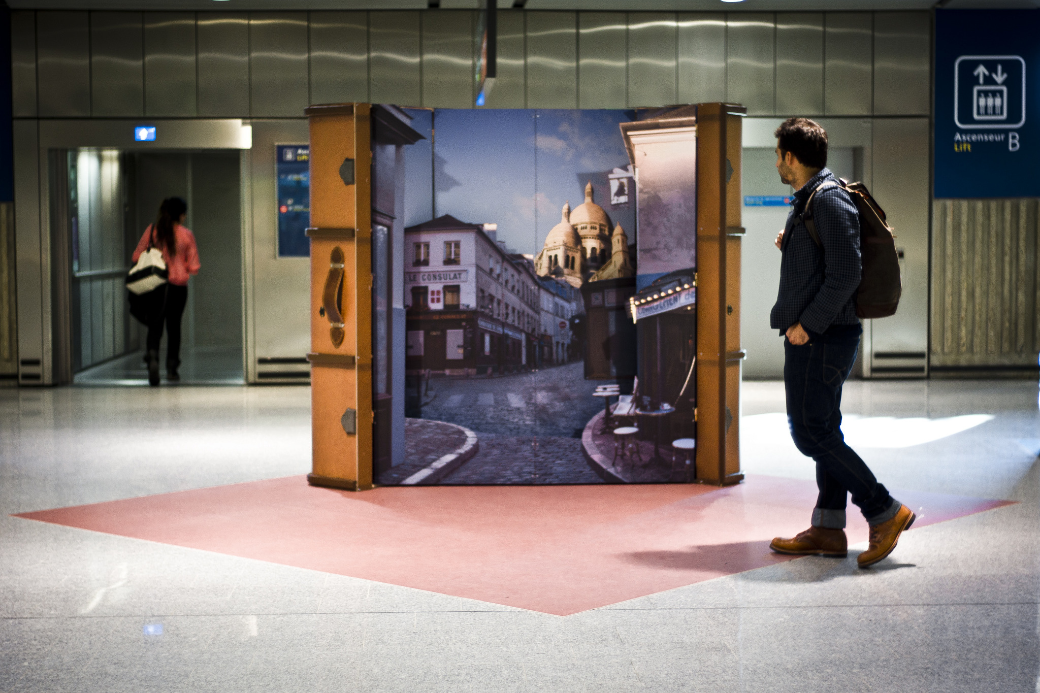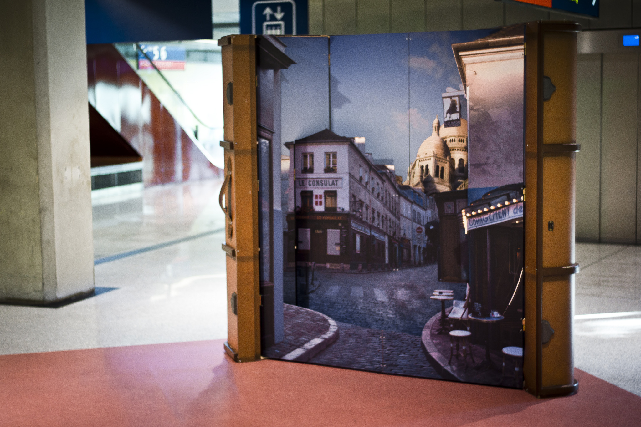 Concevoir du mobilier événementiel spectaculaire et immersif amenant Paris aux ADP. Nous avons conçu deux malles pliables mettant en scènes deux décors de Paris, permettant aux passagers en transit de se prendre en photo devant un panorama "very typique".